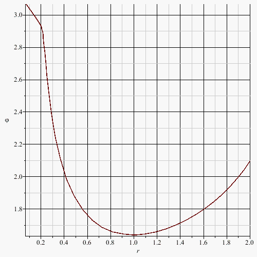 plots[odeplot](soln, [r(t), `&varphi;`(t)])