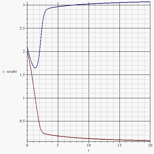 plots[odeplot](soln, [[t, r(t)], [t, varphi(t)]])