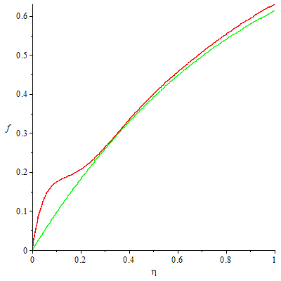 plots:-display(seq(plots:-odeplot(sol[k], [eta, f(eta)], 0..1, color= col[k]), k= 1..2));