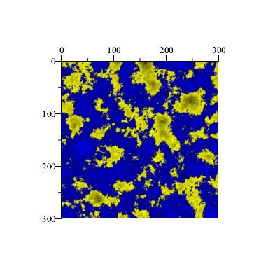 I followed the link from the Wikipedia page to the paper that has the Matlab code. Then I meticulously translated that into efficient and compact Maple code. The totality of the Matlab code accounts for only the GRF:= ...; paragraph of my code! The result is a greyscale image. To add color, I put the high values on a blue scale and the low values on a red+green scale.