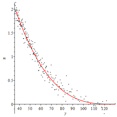 @samira moradi Suppose that Data is an n x 2 Matrix containing the data. In this case, the y data should be in the first column, and the m data should be in the second column. Then simply modify the first plot command to