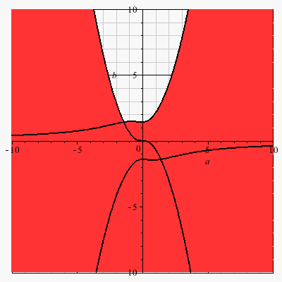 convert(E <=~ 0, list), a= -10..10, b= -10..10,