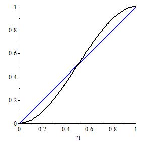 p1 := odeplot(soln, [eta, f(eta)], 0 .. 1, color = black, thickness = 2, scaling = constrained):