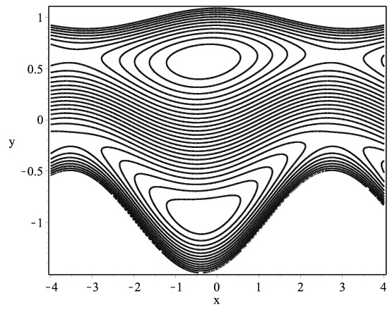 contours=25,color=black,labels=["x","y"]);