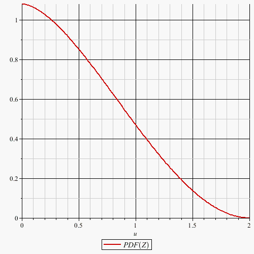 # From symmetry considerations the PDF of Z is twice the PDF of U restricted to U > 0