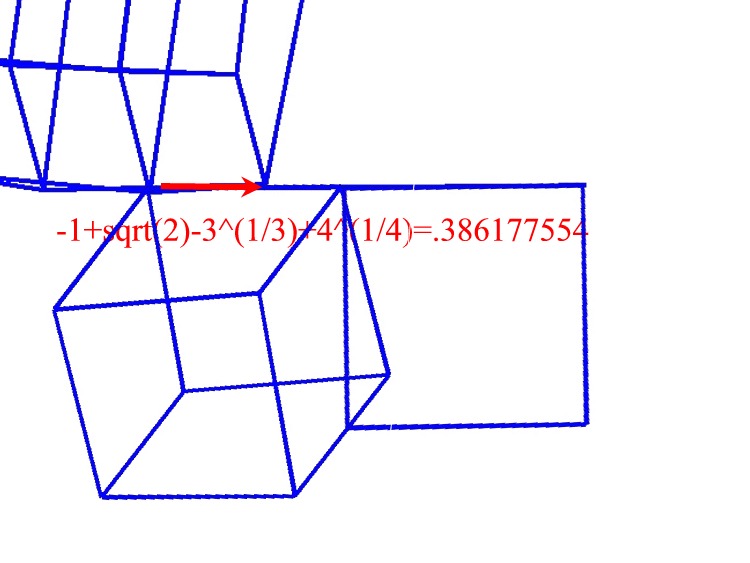 Here is a step by step two dimensional projection of the first 8 hypercubes lined up in such a way that it shows what happens as you compute approximations to the MRB constant. Whether the hypercubes are to scale or not it makes little difference because the series is so slow to converge that the first 8 terms give no decimal places of accuracy.The divergent series for the MRB constant is sum((-1)^n*(n^(1/n)),n=1..infinity) = -sum((-1)^(n+1)*(n^(1/n)),n=1..infinity) as shown here.