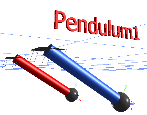 there's no direct way to enter text into the 3D-Space, but you can attach an stl-File with the CAD component from the visualizations tab in the multibody section. The text was done with the freely available drawing tool sketchup from google, along with an stl plugin I randomly picked from a web search. The colored cylinder geometry is already available by default in the multibody tab.