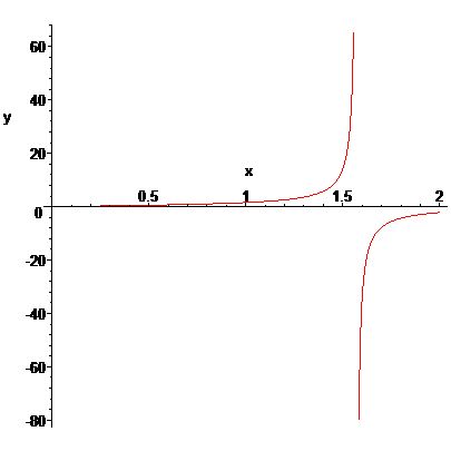 > plots[implicitplot](tan(x)-y, x=0..2,y=-200..200, gridrefine=3,signchange=false,grid=[10,10]);