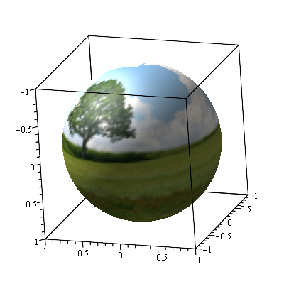 This kind of plotting with an image as surface texture (either image file, or ImageTools Array) can be accomplished directly in Maple 18. See here and ?plot3d,options