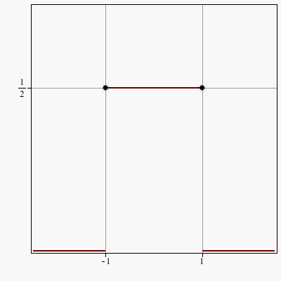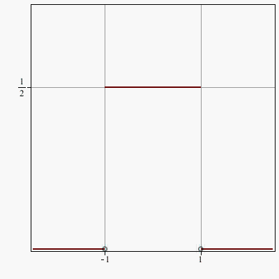 G := piecewise(x <= -1, 0, x < 1, 1/2, 0)