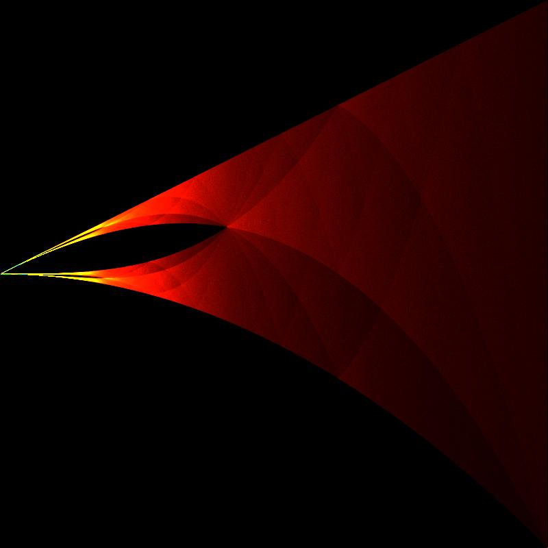 Without proper Array bounds (or shifts and offsets) that BF code currently only gets the bottom left quadrant of the wikipedia images for the Gauss map, since it cannot hande the negative values (the Array bounds are strctly positive, for one thing...). Also recall that the image is currently produced upside down, but can be flipped with one command.