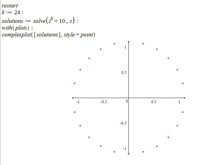 I also found a way to do it by just putting [ ] around the Maple output. The reason for having the solutions as a list was that I wanted to plot the solutions in the complex plane. Thanks a lot for your replies! I appreciate it.