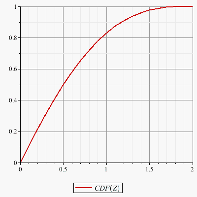 plot([seq([u, F__U(u)], u=0..2, 0.1)], color=red, thickness=2, legend=typeset(:-CDF('Z')), gridlines=true)